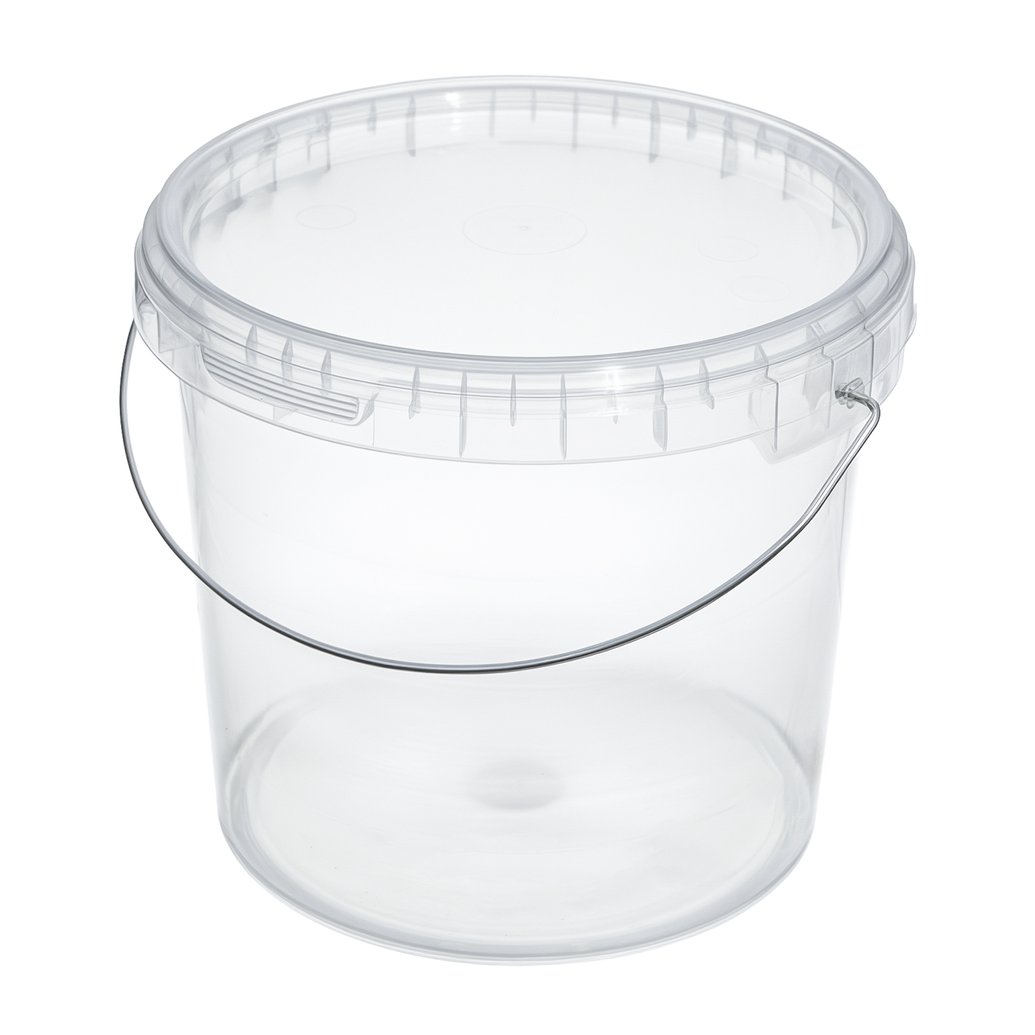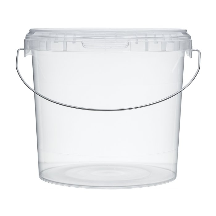 Прозрачное пластиковое ведро емкостью 3,9 литра с металлической ручкой и герметичной крышкой применимо для хранения как сухих, так и жидких продуктов, также подходит для использования в как в бытовых, так и в коммерческих целях.